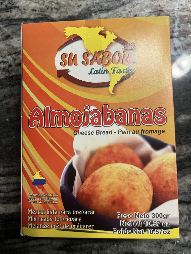 This particular brand uses three languages on their boxes, English, French and Spanish, to reach the highest number of people possible. Almojabanas are a traditional Colombian cheese bread made with cuajada cheese and corn flour. However we used feta and mozzarella cheese for ours. This type of cheese bread can also be found in Chile, Argentina and Puerto Rico as well as in Spain. Traditionally the bread is in a spherical shape but my family likes to make it into a donut-like shape. Its origins can be traced back to the 700s and has travelled from Spain to Colombia and other Latin countries. People typically eat it for breakfast with their morning coffee and some butter, meaning breakfast is the role of the item.